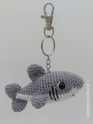 Die Füllung ist aus Bio-Baumwolle und nicht wie üblich aus Polyester. Das gibt dem Hai eine gewisse Steifig- bzw. Festigkeit.